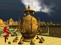 此建筑屹立于《天下贰》西陵城中心,咋眼一看,跟地动仪没什么区别,留心看便会发觉此建筑比真实的地动仪多了个“帽子”,这正是《天下贰》模仿过来的纯种建筑!