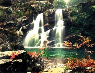 枫林、瀑布、大海