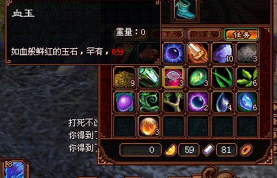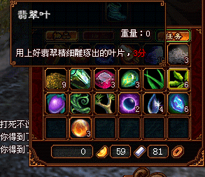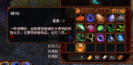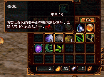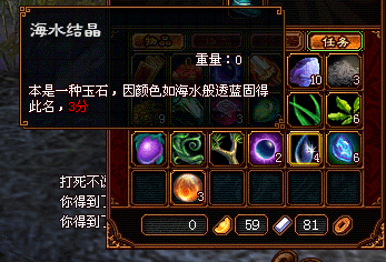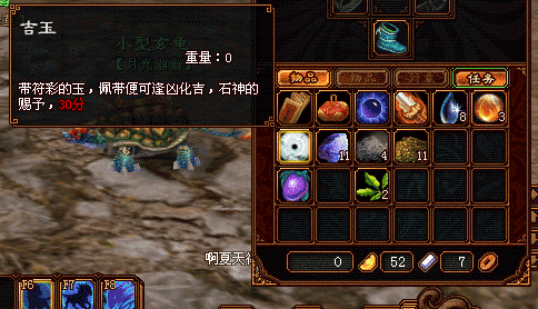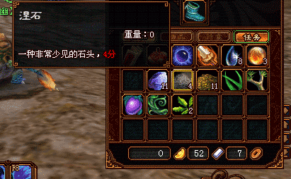 粗水晶矿(采集时 不会有怪出现 采集后有几率获得水晶球 绿石子儿 蓝石子儿 红石子儿 黄石子儿)注:水晶球可以和左蛮换香藻(对NPC使用后既得)